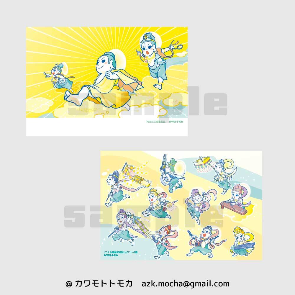 「阿弥陀三尊来迎図」と「二十三菩薩来迎図(1~4幅)」のポストカード2点セットです。